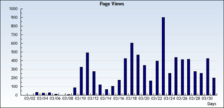 According to our host 1and1.com, more than 100 people have visited the site each day for the past 13 days.