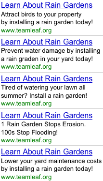 Below are the 5 text ads that we created to be displayed one at a time on google searches and google's affiliates page's that contain the keywords we chose.