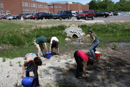 Unfortunately, the articles state that our rain garden is still in the works. This is not true. All of the plants but two were planted on March 14th. Pictures of these plants can be found on our Take Action page. Video coverage from our school's own Ladue View can be found here.