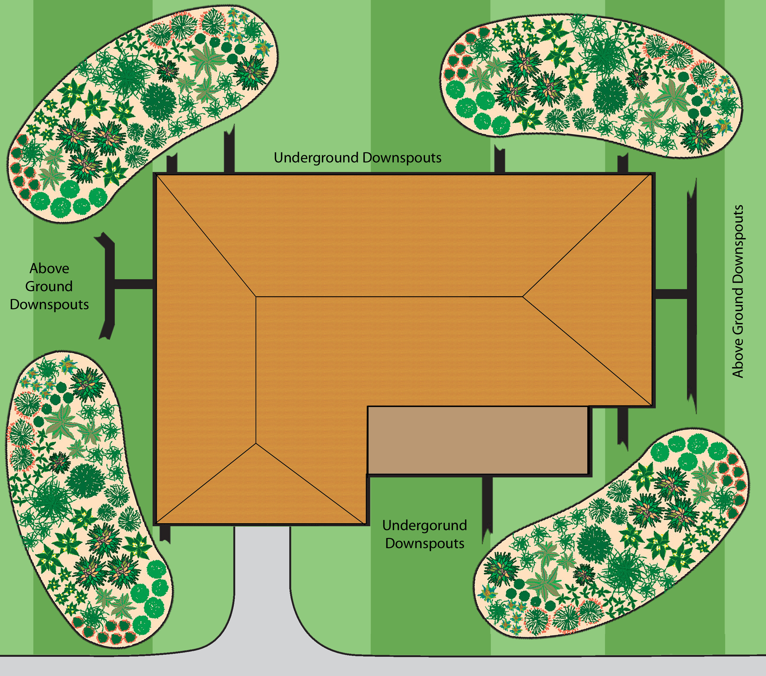 1. Decide where to put your rain garden (DO NOT PLAN IT ANYWHERE WITHIN 10 FT OF YOUR HOUSE AS THERE MAY BE FOUNDATION WITHIN THAT RANGE!) and how big you want it to be. Keep in mind that rain gardens perform best when located near downspouts or in low lying areas that water naturally collects in.